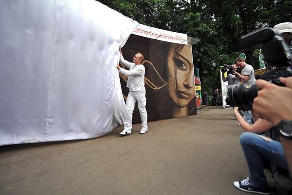 World's Largest Painting of the Coffee — In Russia in the Park of Culture and Rest named after Gorky recorded a new world record Russian Book of Records - the very big picture, lined with coffee granules with the appropriate bracing "building material" called "The Awakening"